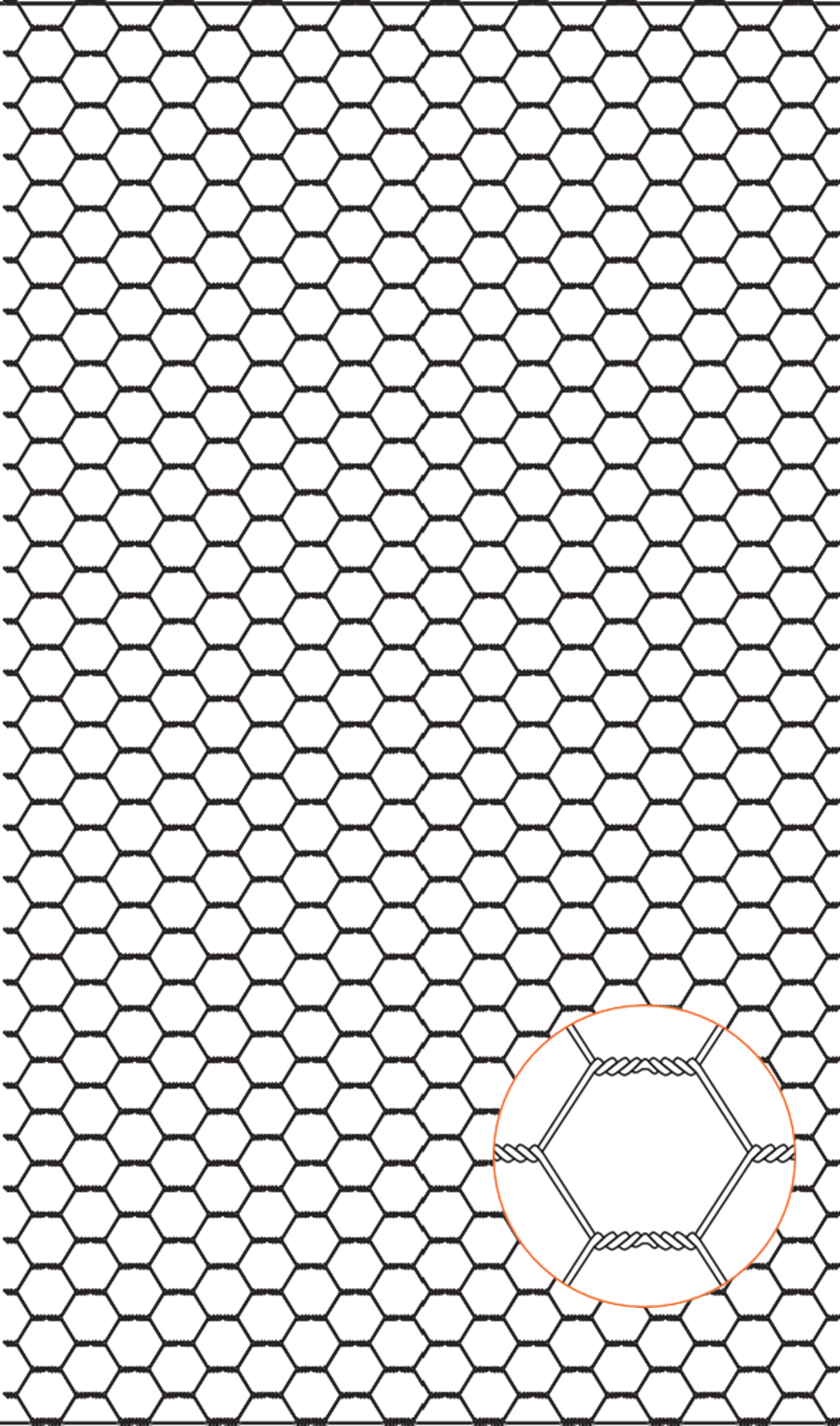 Malla formada por alambres de alta resistencia, galvanizados y entorchados entre si formando hexágonos.